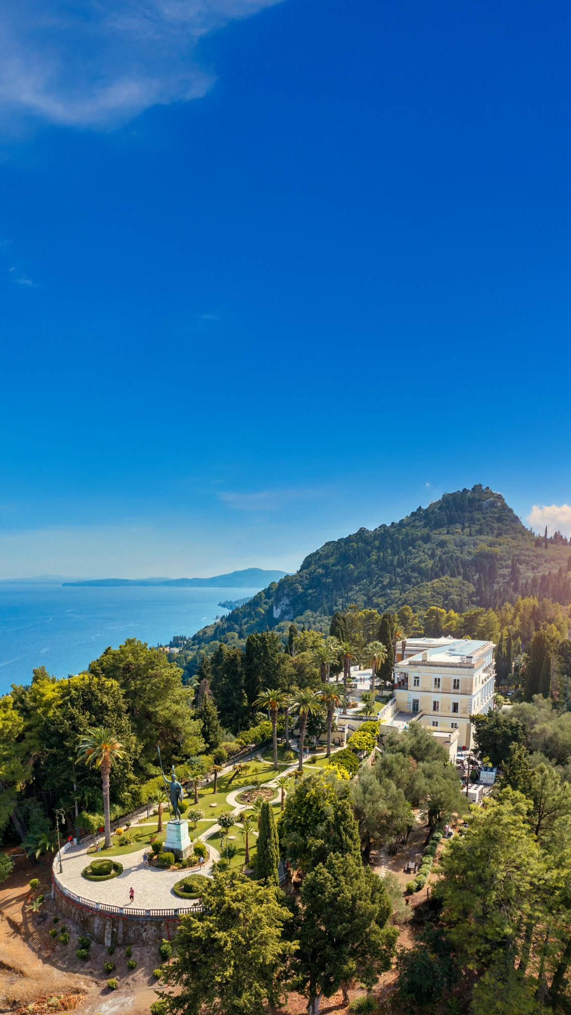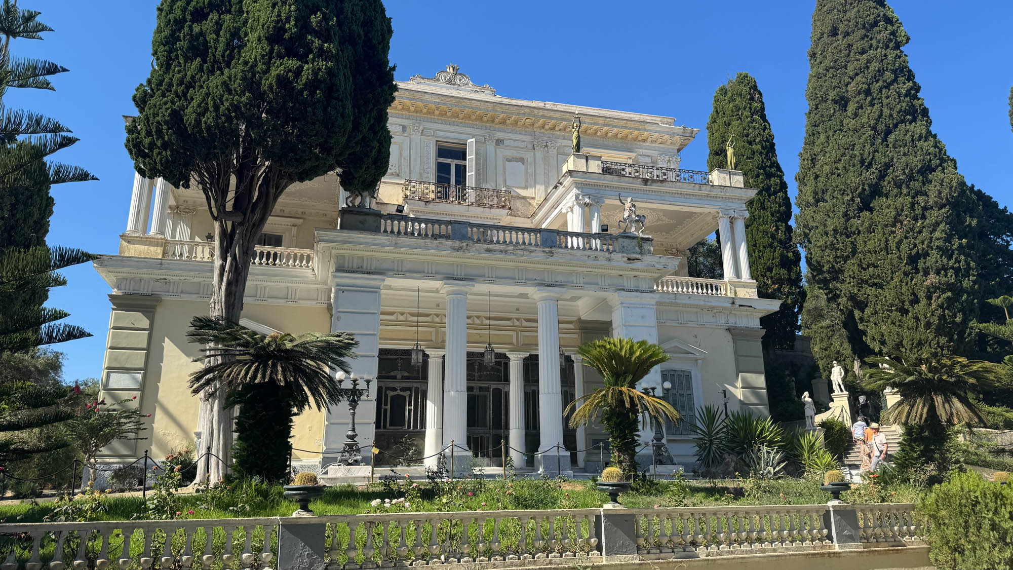 Na miejsce wybudowania pałacu cesarzowa wybrała wzgórza porośnięte oliwkami i cyprysami, gdzie błękit Morza Jońskiego spotyka się z bezkresem nieba. Od momentu powstania był w pewnym sensie cichym świadkiem łez, marzeń i nieuleczalnej tęsknoty Elżbiety Bawarskiej, której historia wkrótce stać się miała jedną z najbardziej tragicznych.