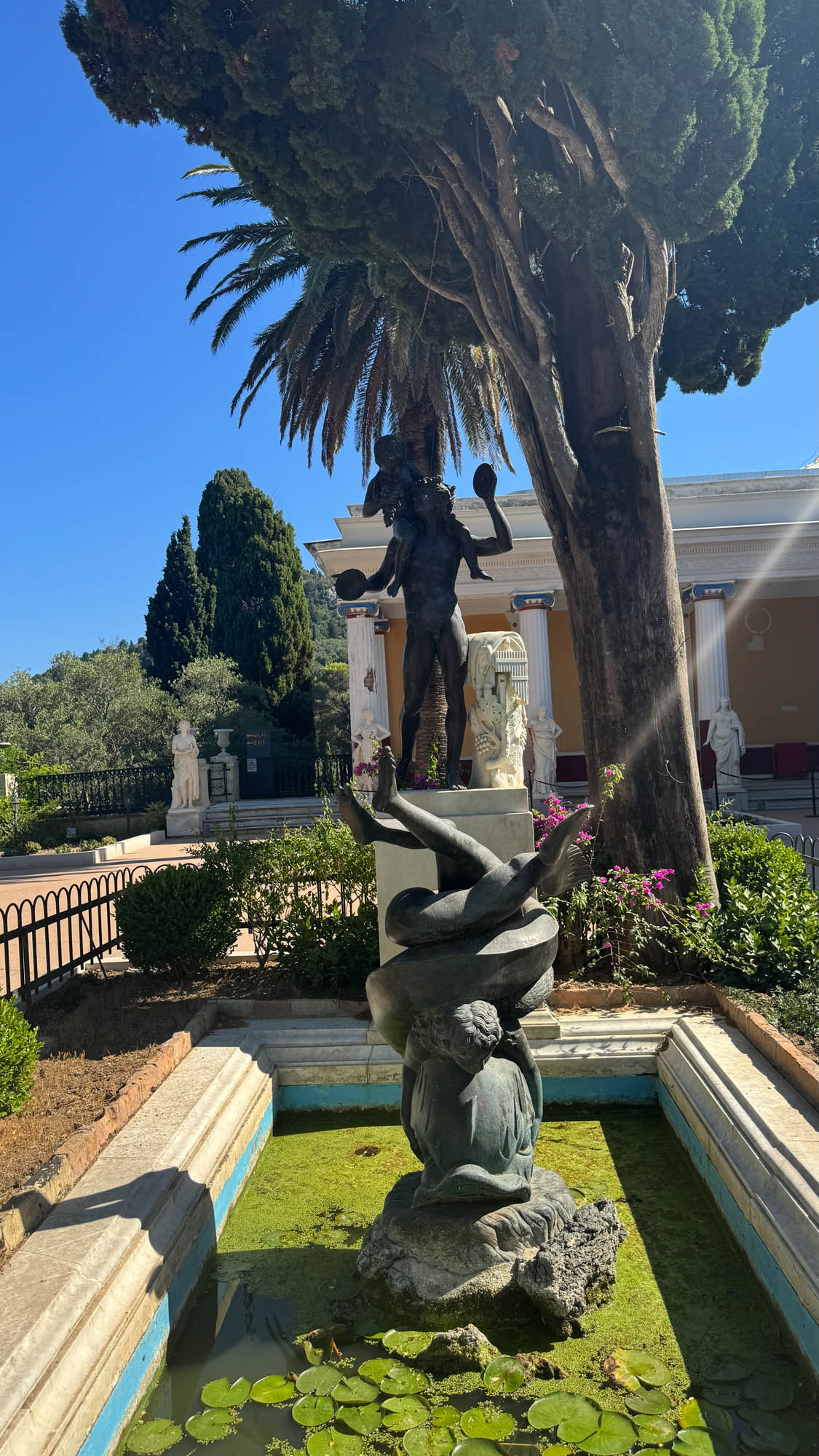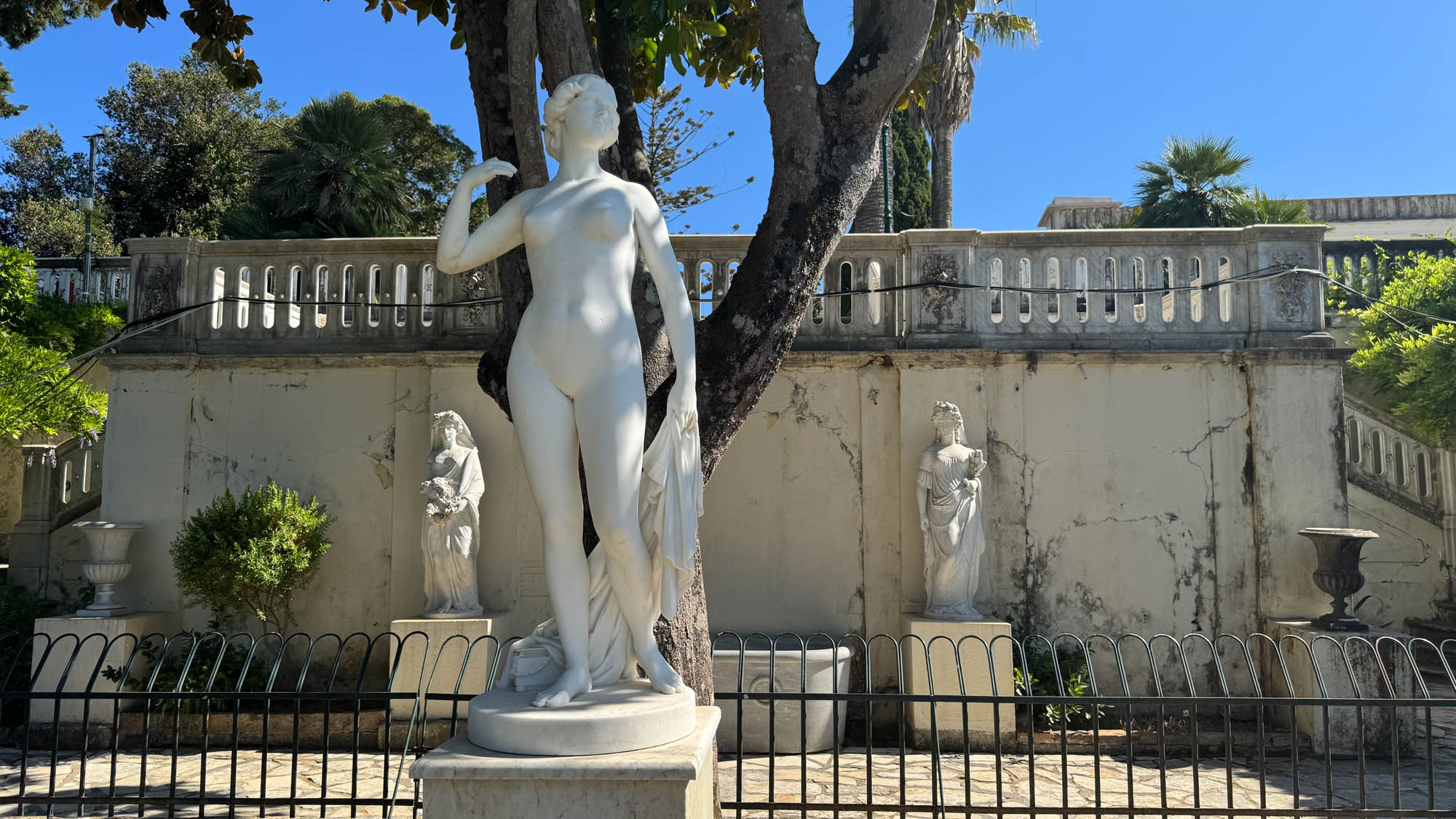 muzy w ogrodzie achillionu, piękne rzeźny, detale, korfu