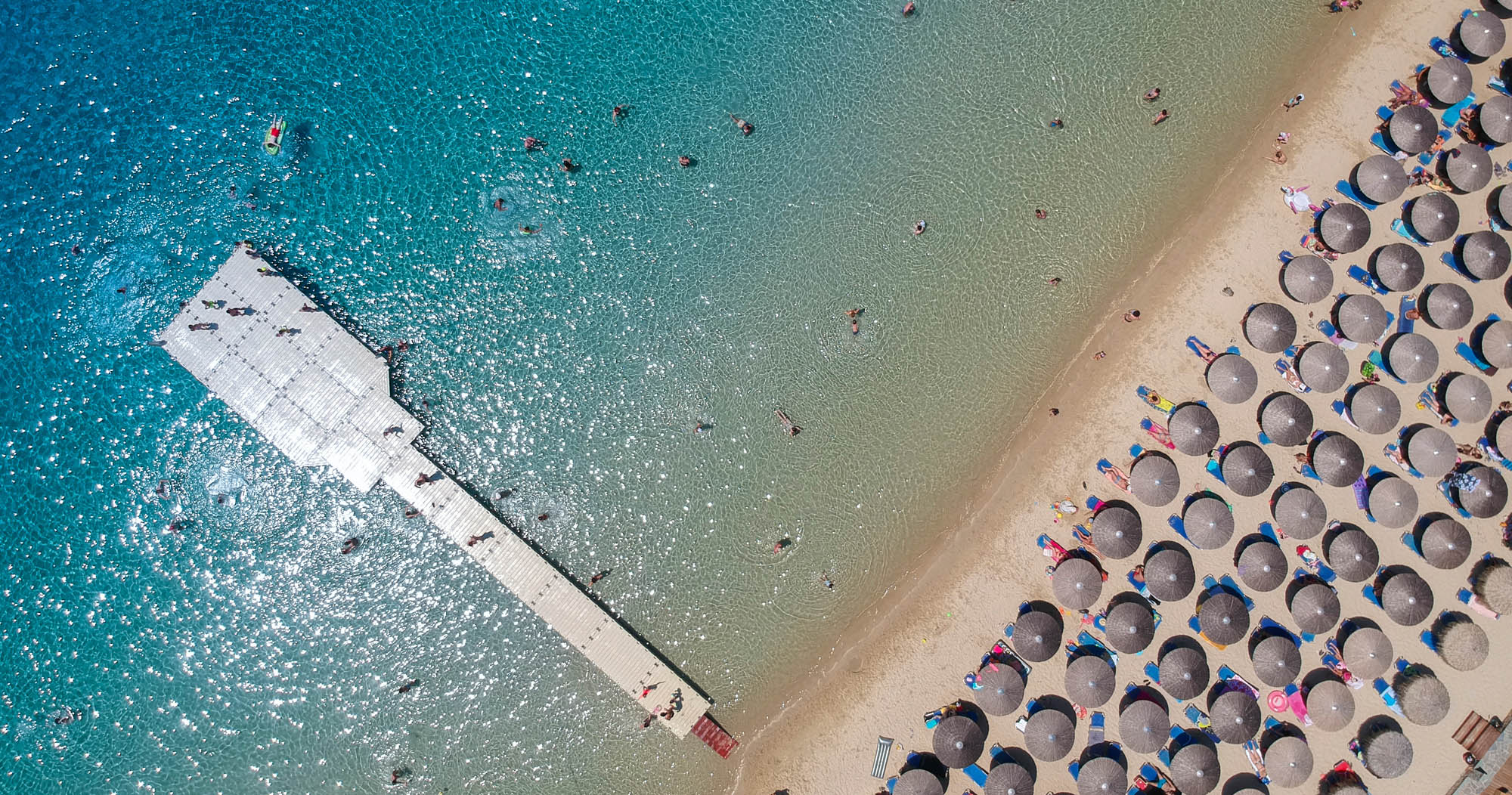 plaża na wyspie ammouliani, chalkidiki, widok z góry