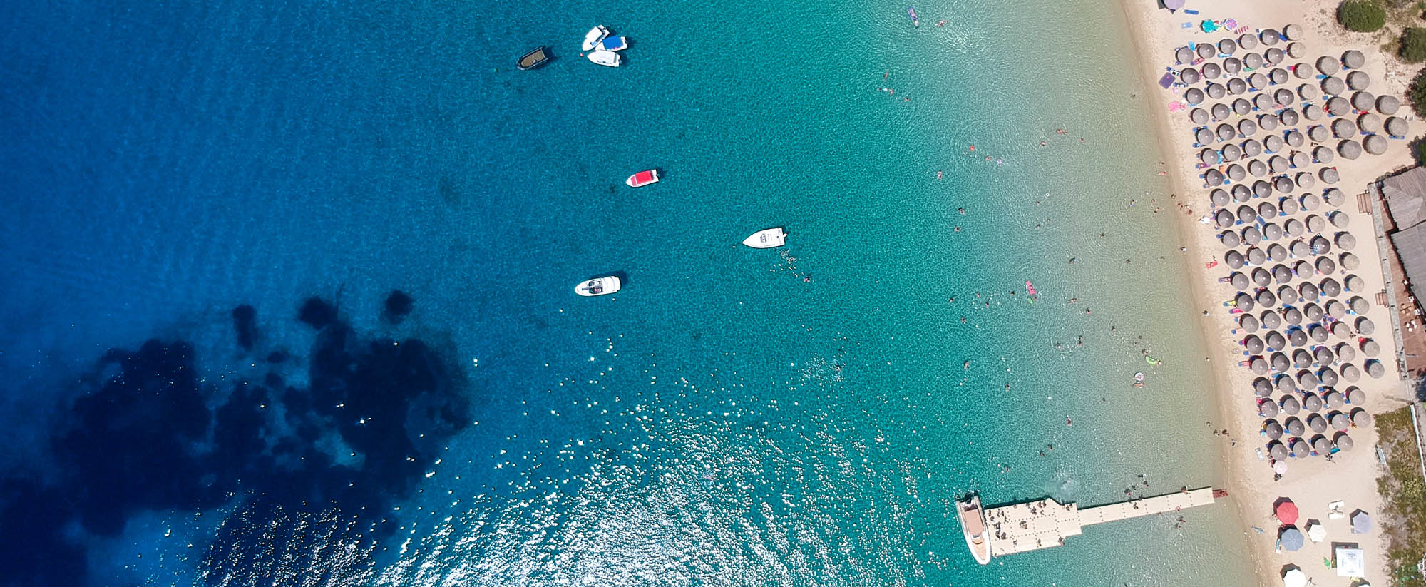 jedna z plaż na ammouliani, wyspa chalkidiki, widok na plaże z góry