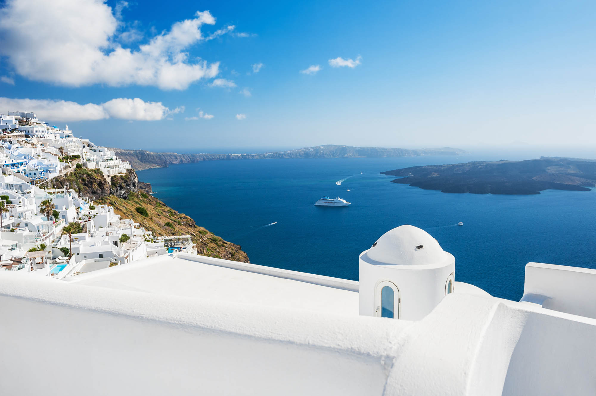 Spędźmy dziś na wyspie jeden idealny dzień. Wcześnie rano wyruszymy z Krety, szybka łódź lub katamaran poniosą nas przez błękitne morze w niecałe 2,5 godziny. A potem… cudna kaldera, biało niebieskie domki i świątynie oraz wyjątkowe widoki w miasteczkach Fira i Oia.