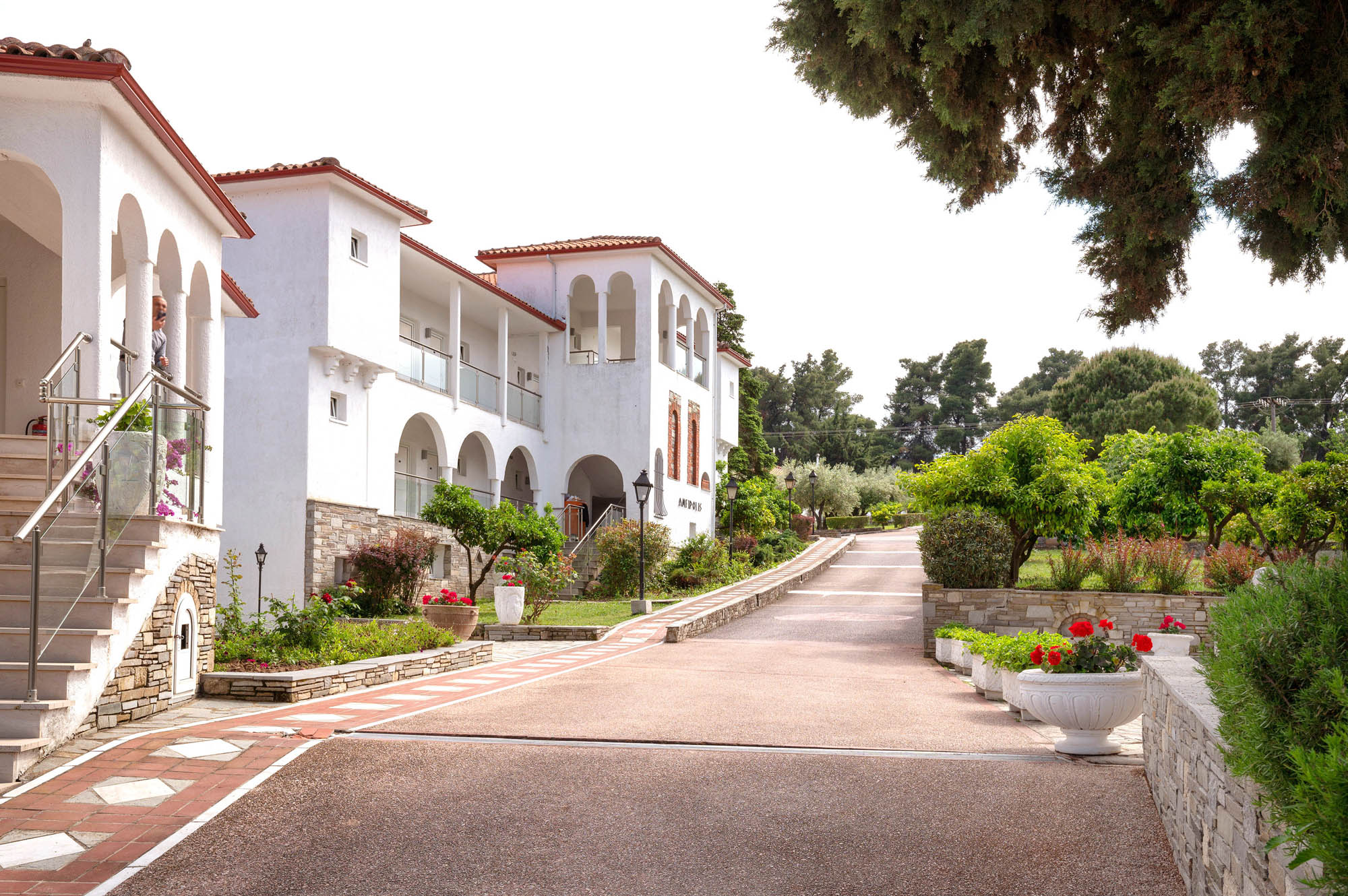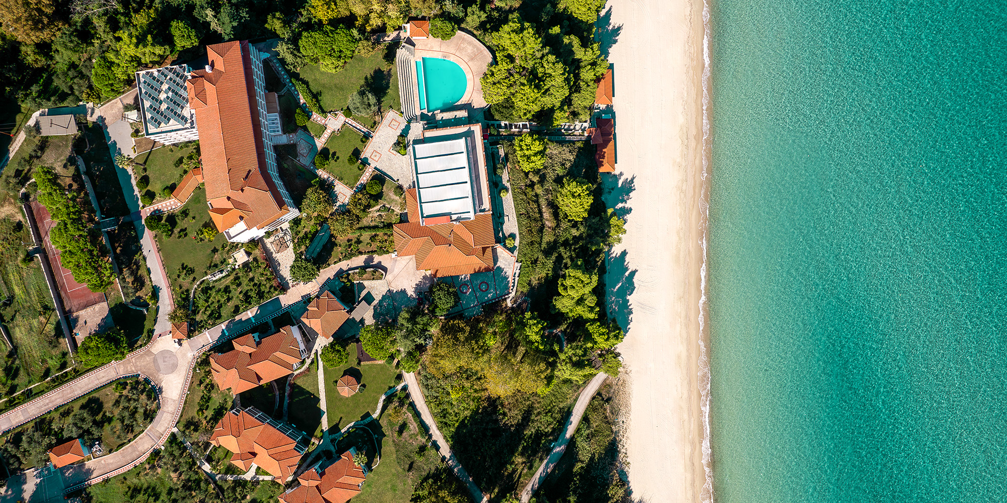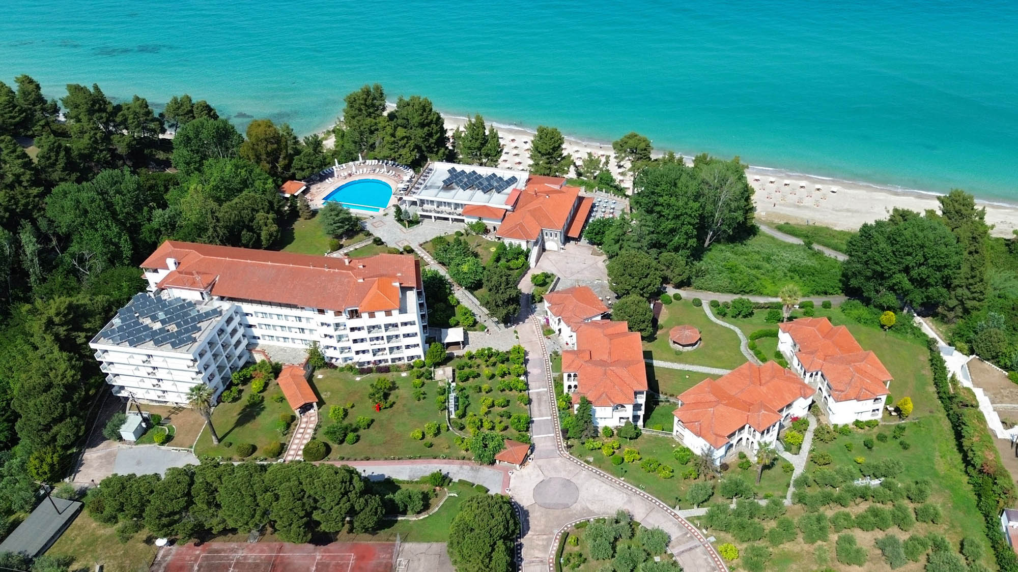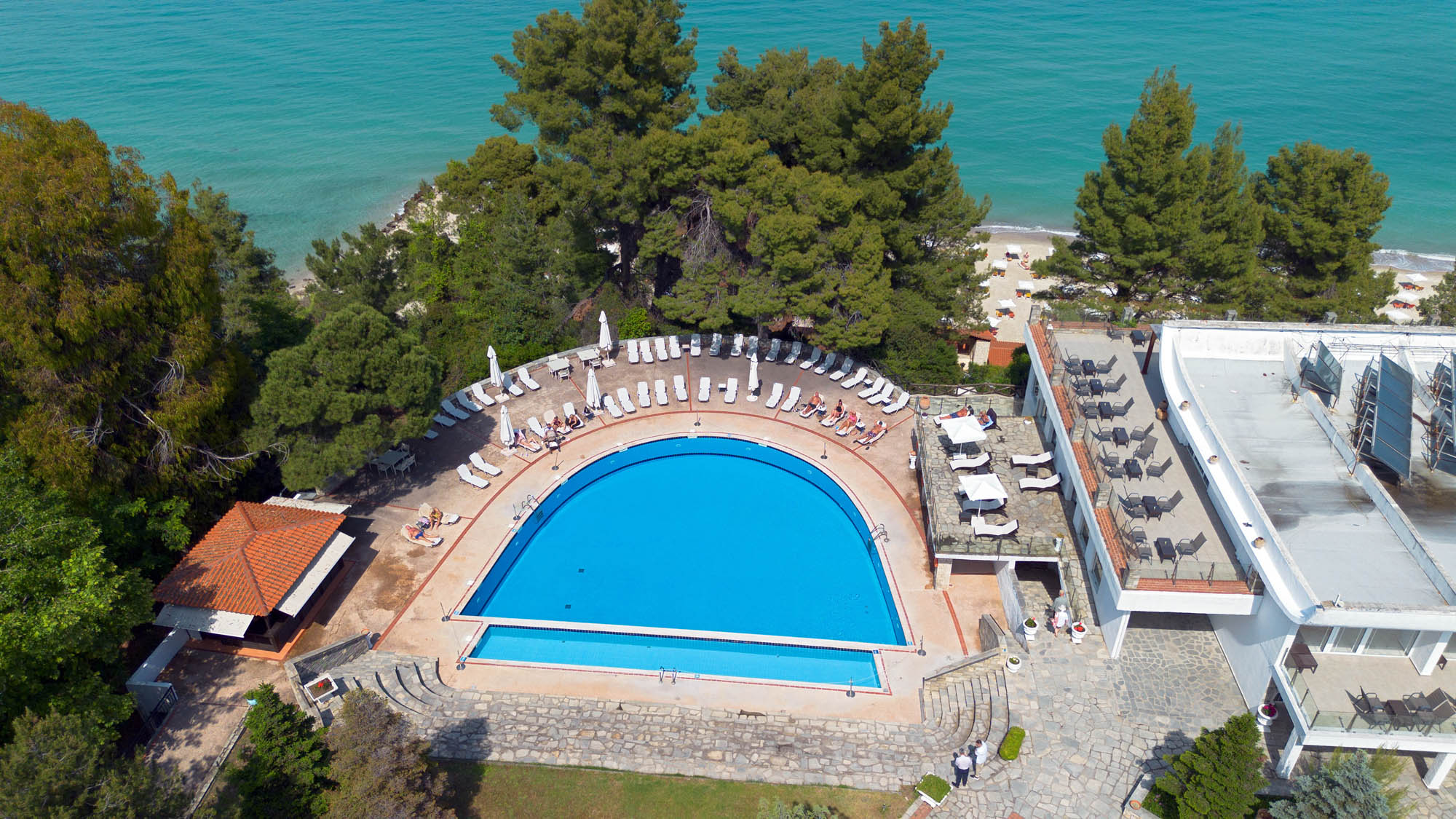 Hotel położony jest w pobliżu miejscowości Kriopigi, na wspomnianym już, pierwszym „palcu” półwyspu – Kassandrze pomiędzy błękitnym morzem a porośniętymi sosnami piniowymi wzgórzami ze ścieżkami spacerowymi. Z lotniska w Salonikach dojedziesz tu w trochę ponad godzinę.